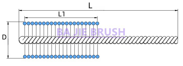 N.º de pieza | Diámetro (mm) Diámetro del cepillo | L1(mm) Diámetro de trabajo | Diámetro del tallo (mm) | Largo (mm) Longitud total |