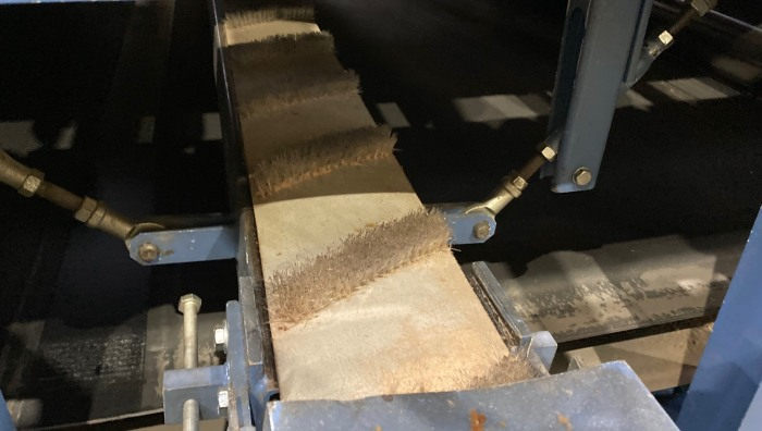 Cepillo de banda ancha para la industria de la madera. Consta de una banda de cuero cromado y cerdas flexibles de nailon. Se utiliza ampliamente en la producción de tableros de madera.